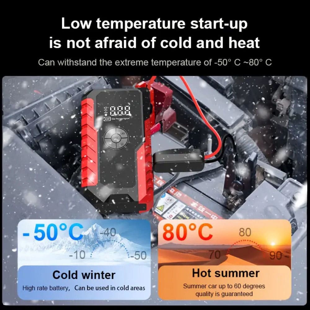The Dynara Jump Starter is built for ultimate reliability with its cold start capability, ensuring your vehicle starts even in the harshest winter conditions.