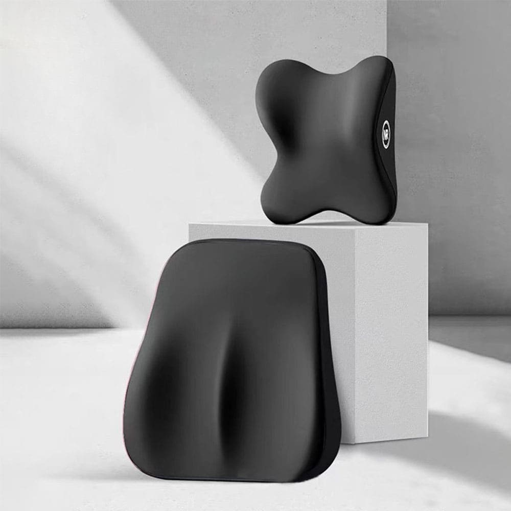 this set includes both a lumbar pillow and a car headrest pillow with advanced memory foam for full back and neck support.
