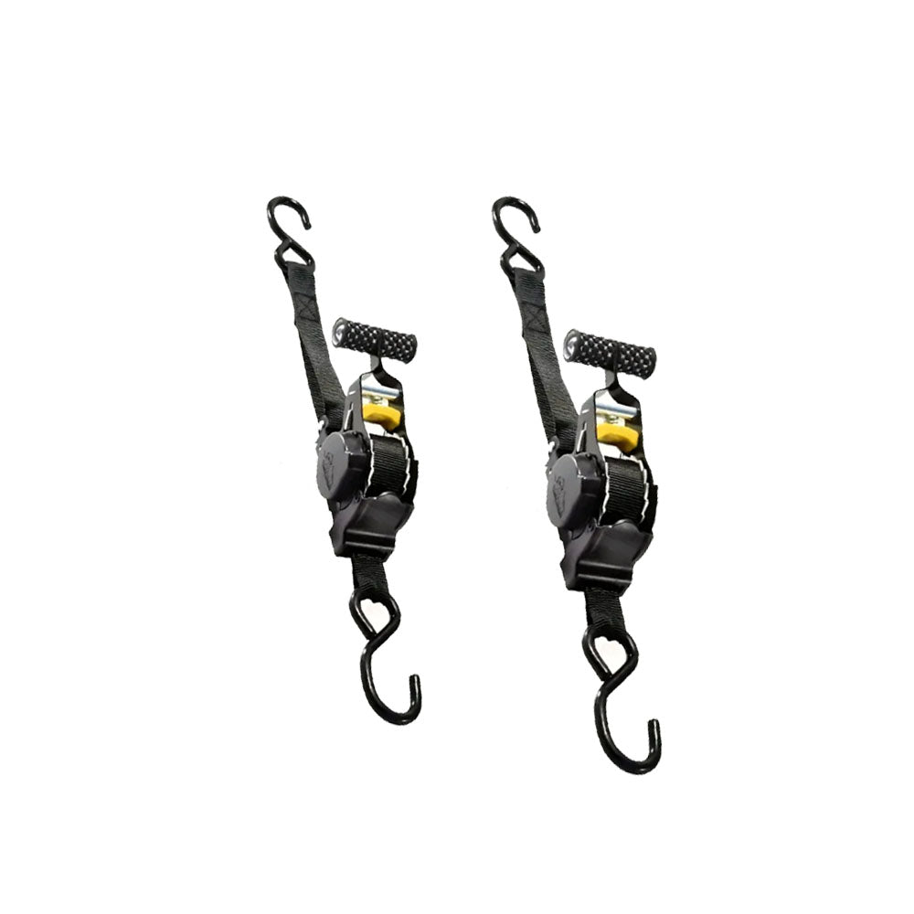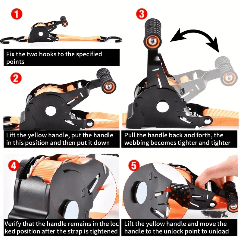 The retractable ratchet tie down straps feature a simple ratchet mechanism.