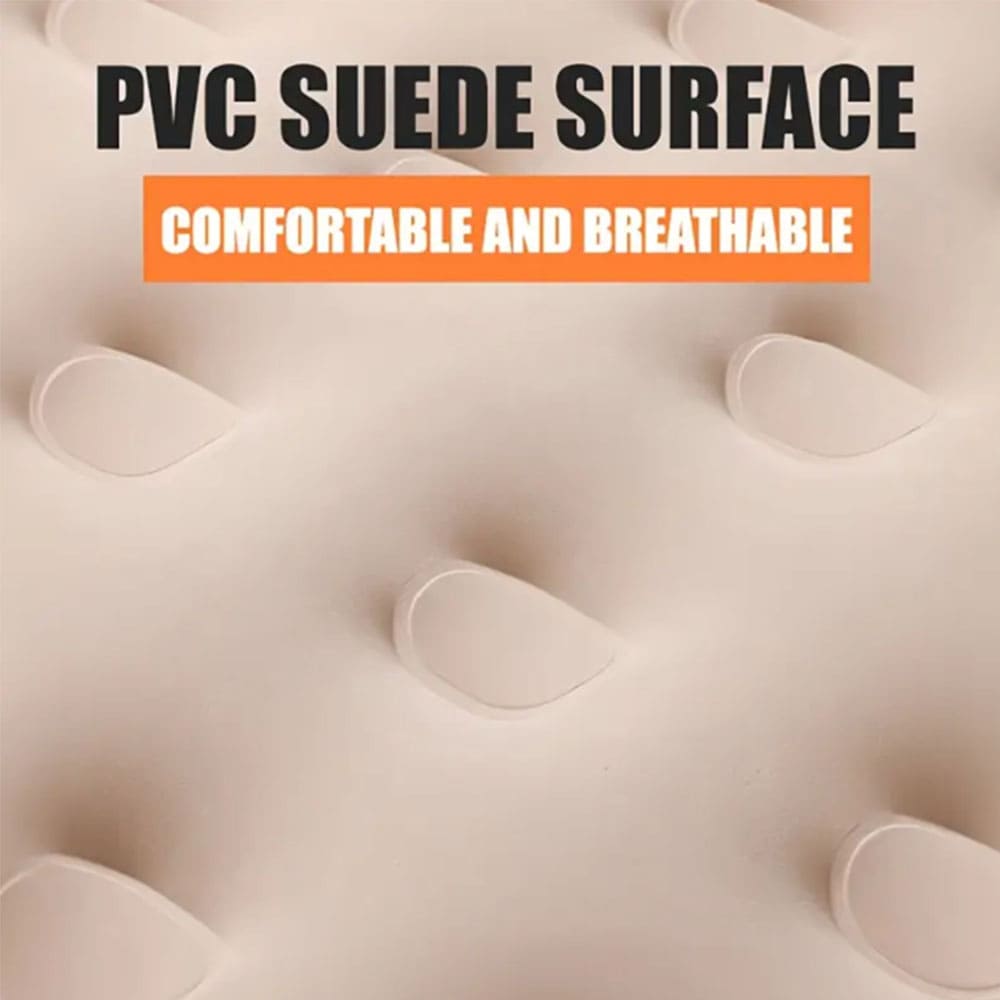 The twin air mattress features a thick, waterproof bottom and a soft, flocked surface — perfect for camping, hiking, or sleeping outdoors in comfort.